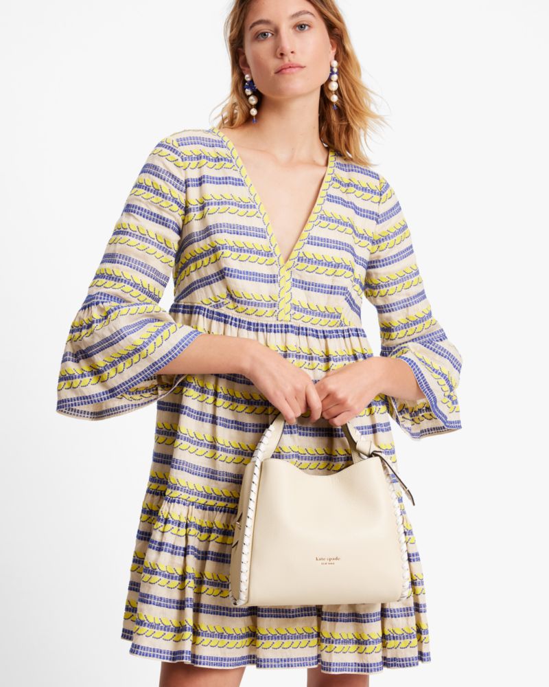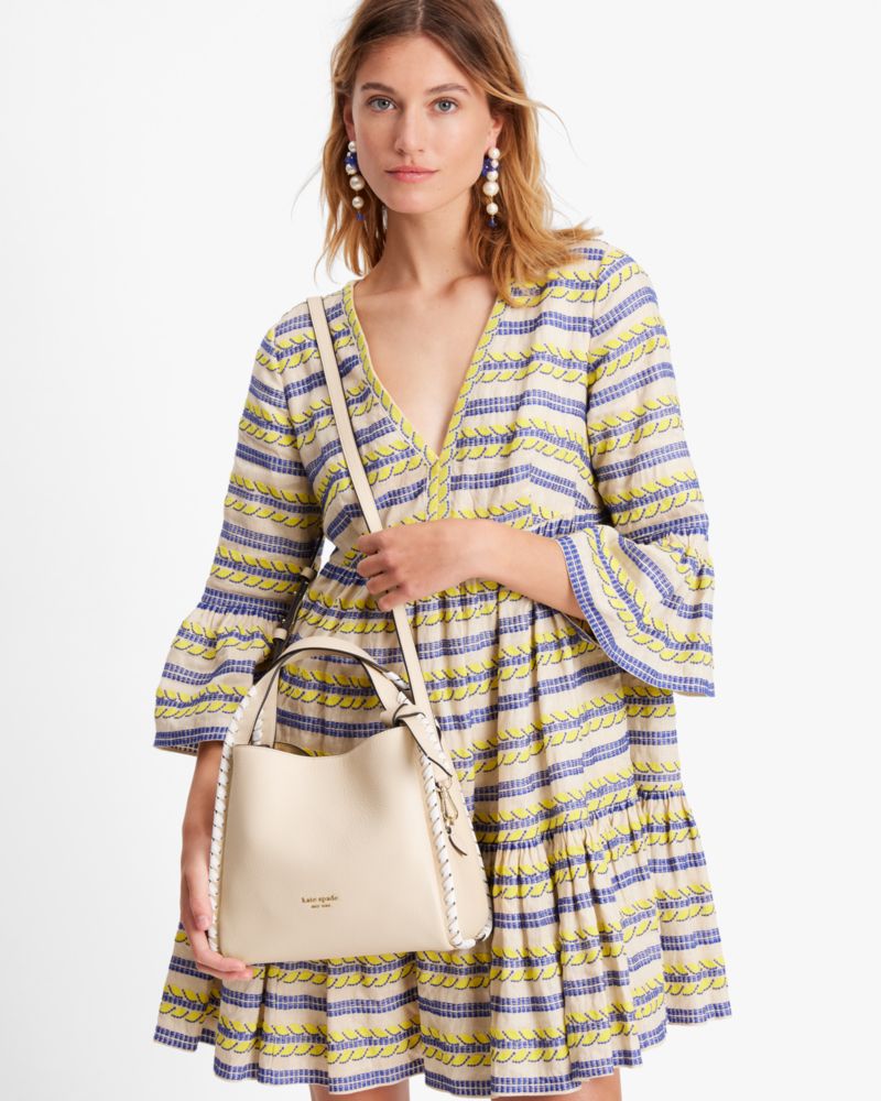 Our versatile Knott crossbody tote is updated with contrast whipstitch details. Carry it via the knotted handles, or sling it over your shoulder with the optional strap when you find your hands full.