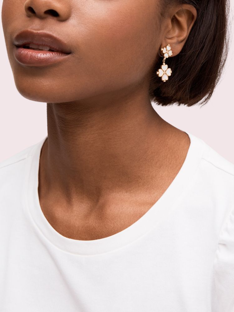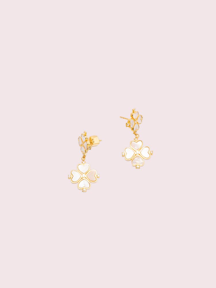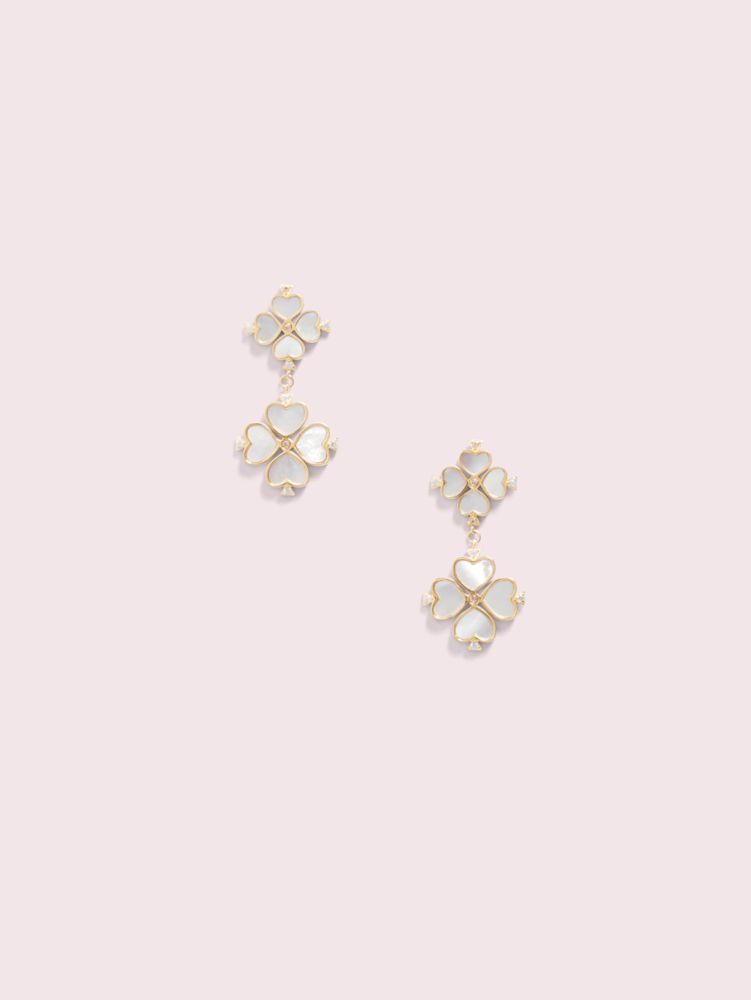 this spring, we debuted a flower motif made by joining four spades together like the leaves of a lucky clover. this season, we elevated it on these drop studs along with even more thoughtful details--like the mother-of-pearl insets and gold-tone metal edges.