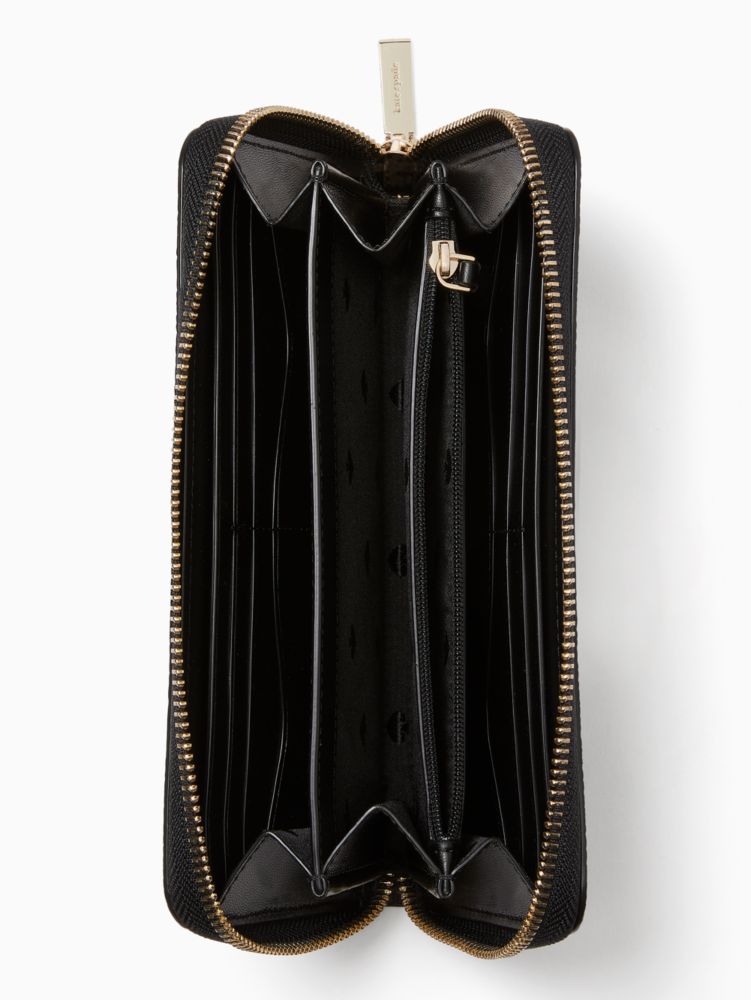 Not only does this large wallet have multiple card slots, billfold compartments and zip pockets at the interior, it has a very pretty exterior. In this case, we think more is more.