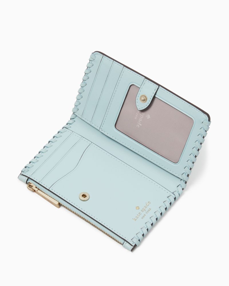 Kate Spade,Leila Pebbled Leather Whipstitch Small Slim Bifold Wallet,