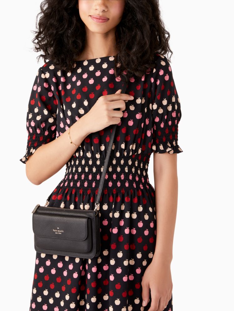 Kate Spade,Leila Small Crossbody,Leather,Crossbody,Metal,Logo,Lined,Casual,Black
