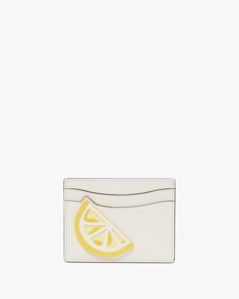 Your new cardholder is in season. We made it using scratch-resistant Saffiano leather with juicy citrus appliqués.
