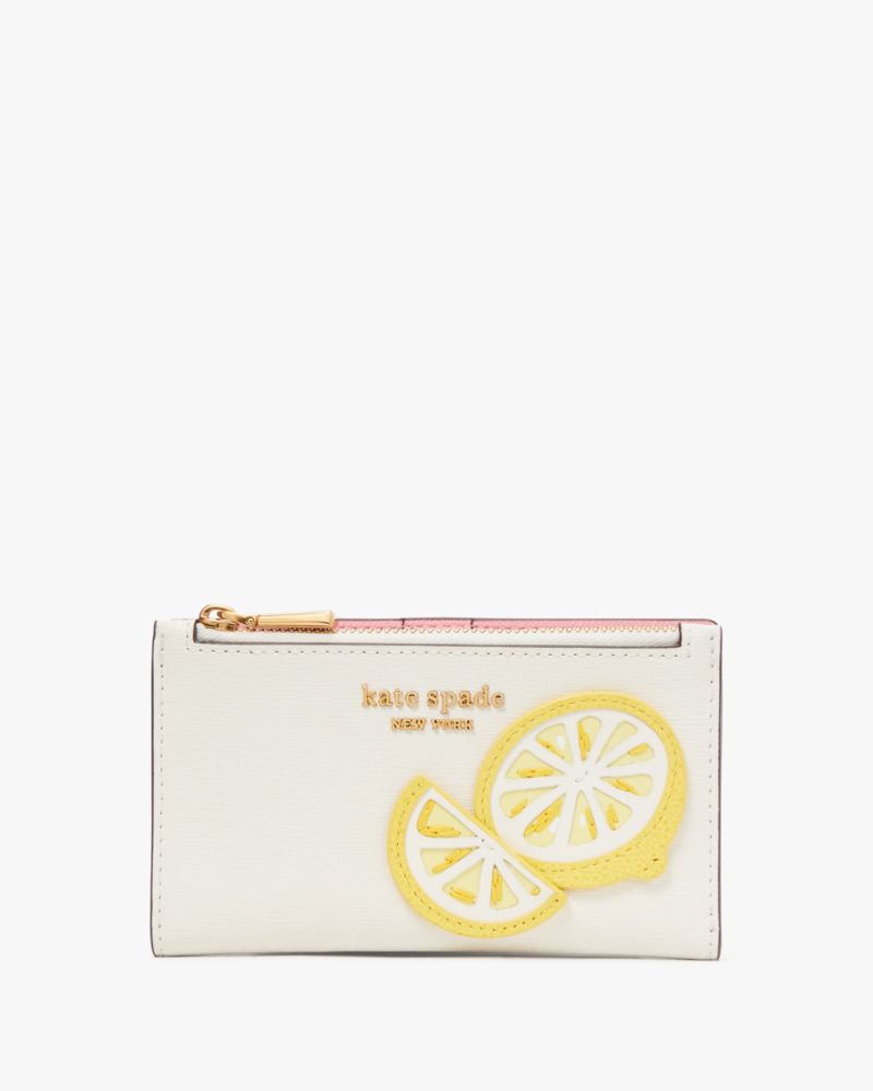 Kate Spade,Lemon Drop Appliqué Small Slim Bifold Wallet,
