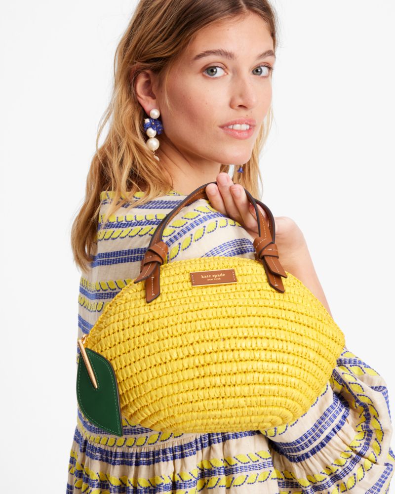 Kate Spade,Lemon Drop Straw 3d Crossbody Tote,