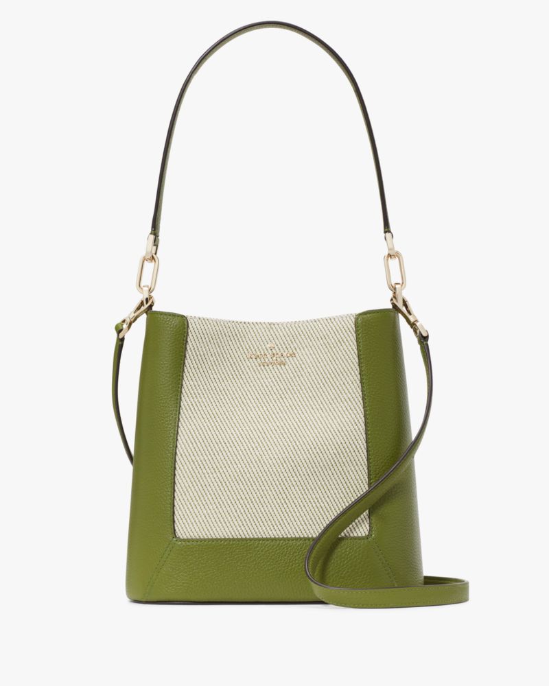Kate Spade,Lena Canvas Colorblock Bucket Bag,Leather,Canvas,Shoulder Bag,Metal Material,Color Block,Logo,Mixed Media,Mixed...,Multi Color