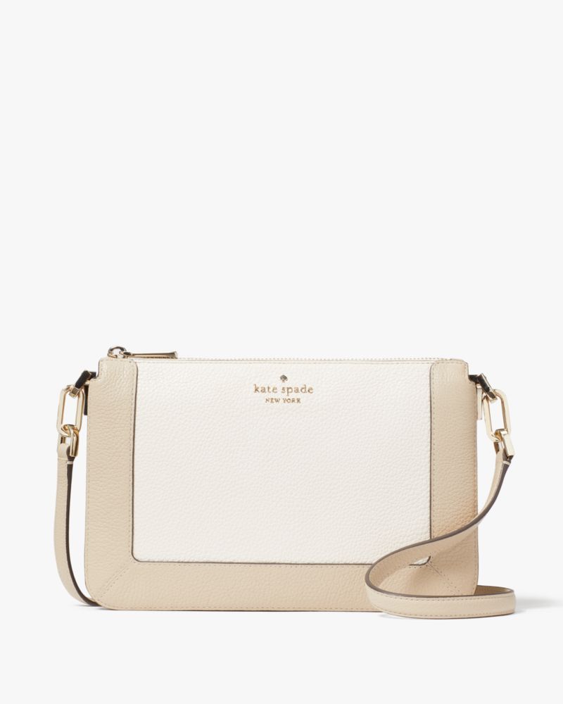 Kate Spade,Lena Colorblock Double Compartment Crossbody,Crossbody,Metal Material,Color Block,Logo,Metal,Casual,White