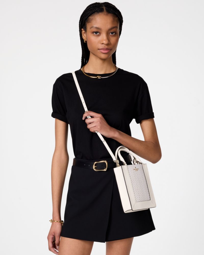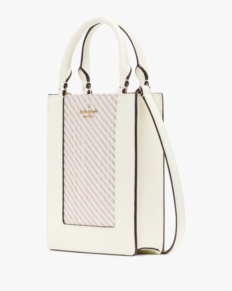 Kate Spade,Lena Straw Mini Tote,Crossbody,Straw,Mixed Media,Metal,Logo,Work,Day Party,White