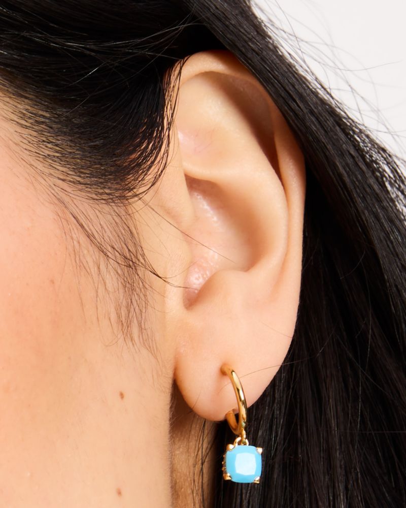 Kate Spade,Little Luxuries 6mm Square Huggies,Huggies,Dangle Earring,Crystal,Gem Embellishment,Gold Metal,Day Party,