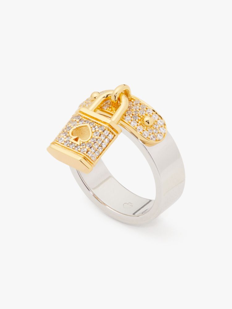 Lock up your look with this cool ring: It's got a sparkling spade cutout padlock, so you can rest assured your fit is securely on point.