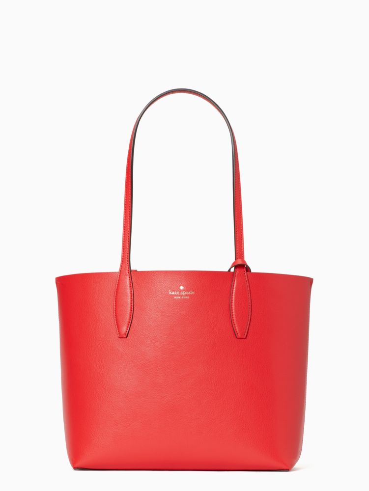 you know this tote holds your everyday stuff like a wallet, keys, phone, sunglasses. it also holds: two red lipsticks, $6 in change, 11 crumpled receipts, an avocado…