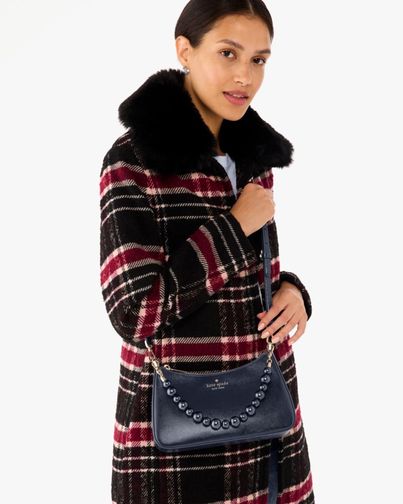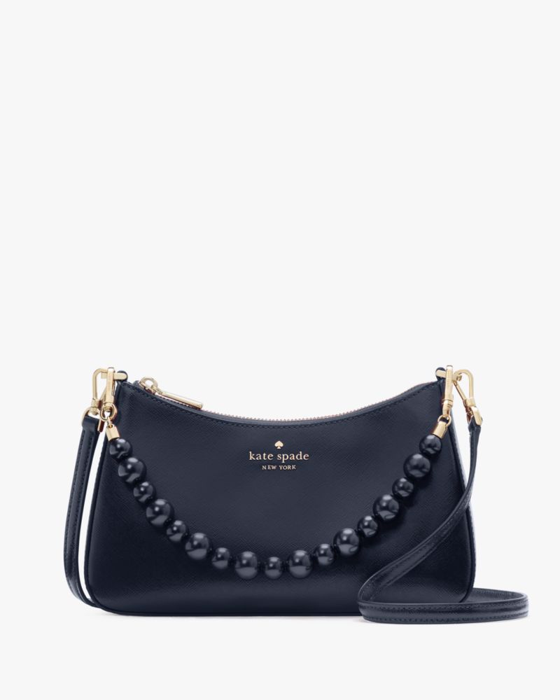 Kate Spade,Madison Faux Pearl Medium Convertible Crossbody,Crossbody,Metal Material,Logo,Metal,Bead Embellishment,Gold Met...,Navy