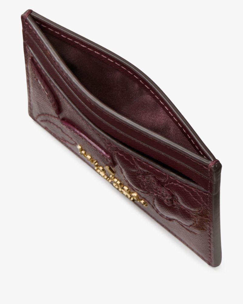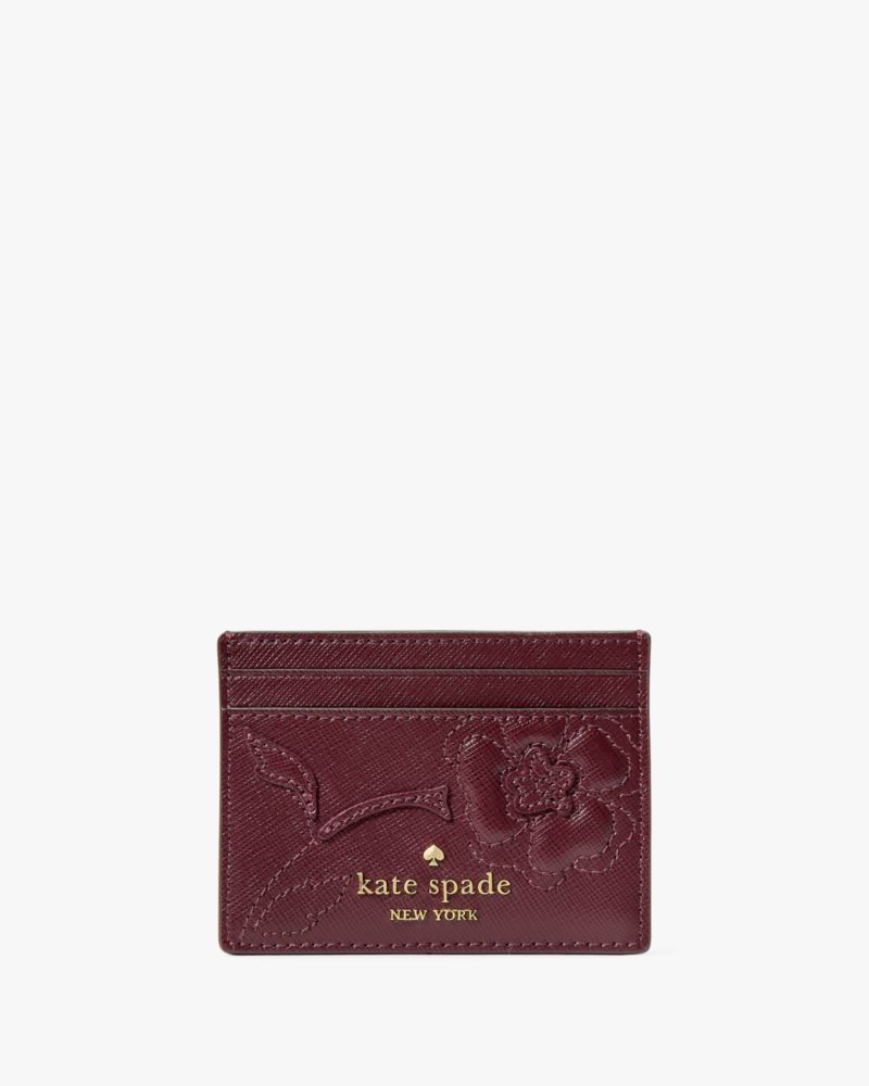 Kate Spade,Madison Floral Applique Small Slim Card Holder,Maroon