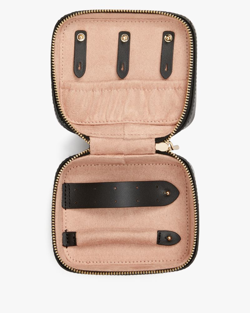 Your fabulous jewelry deserves to be carried in a fabulous holder. Did we mention the space for organizing your necklaces & earrings? Bon voyage.