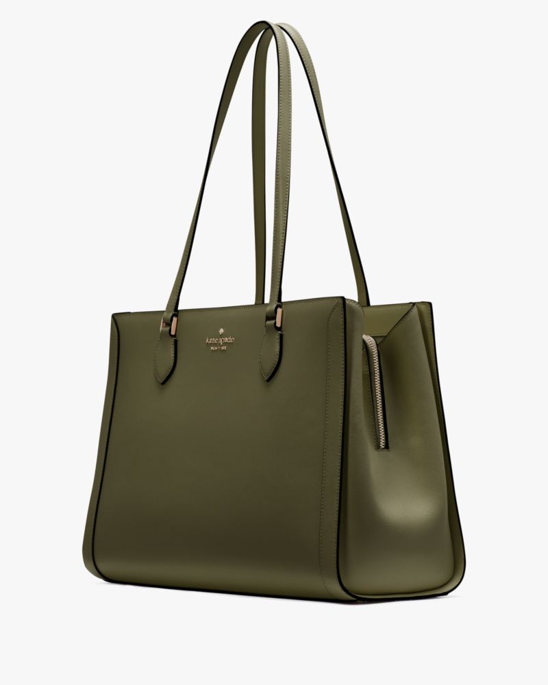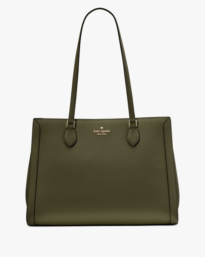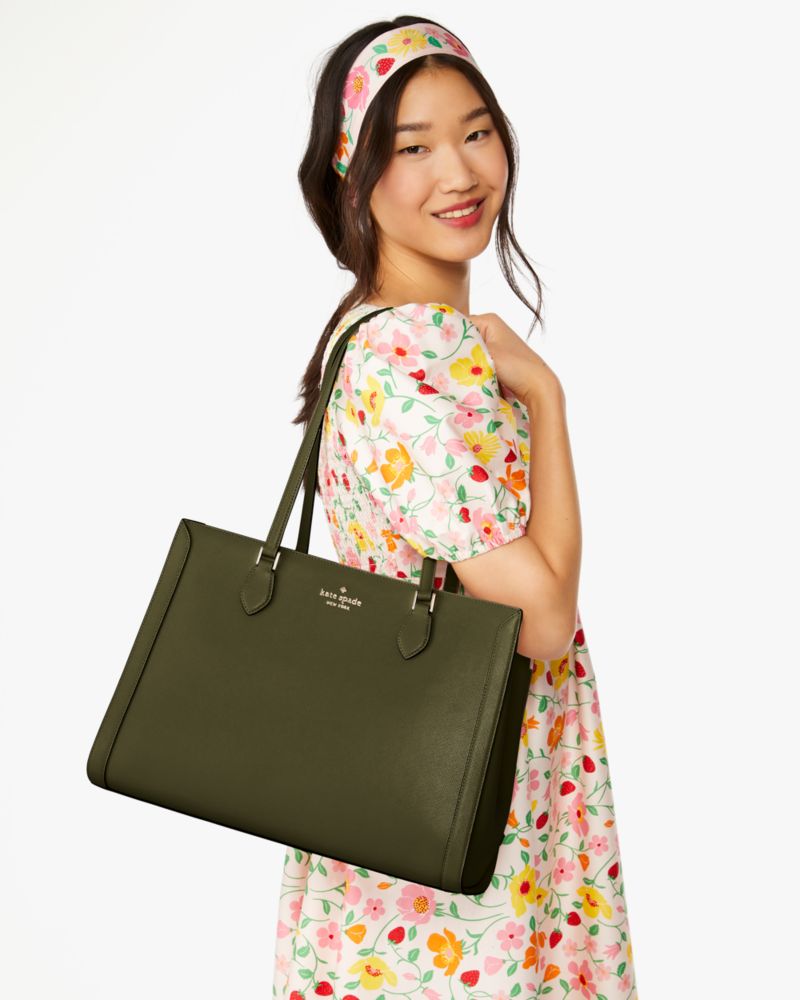 Stay organized on the go with our Madison laptop tote. Stylish and practical, it's crafted from durable Saffiano leather with a sleek east-west design. Plus, it features multiple pockets for essentials like a laptop, wallet and more.