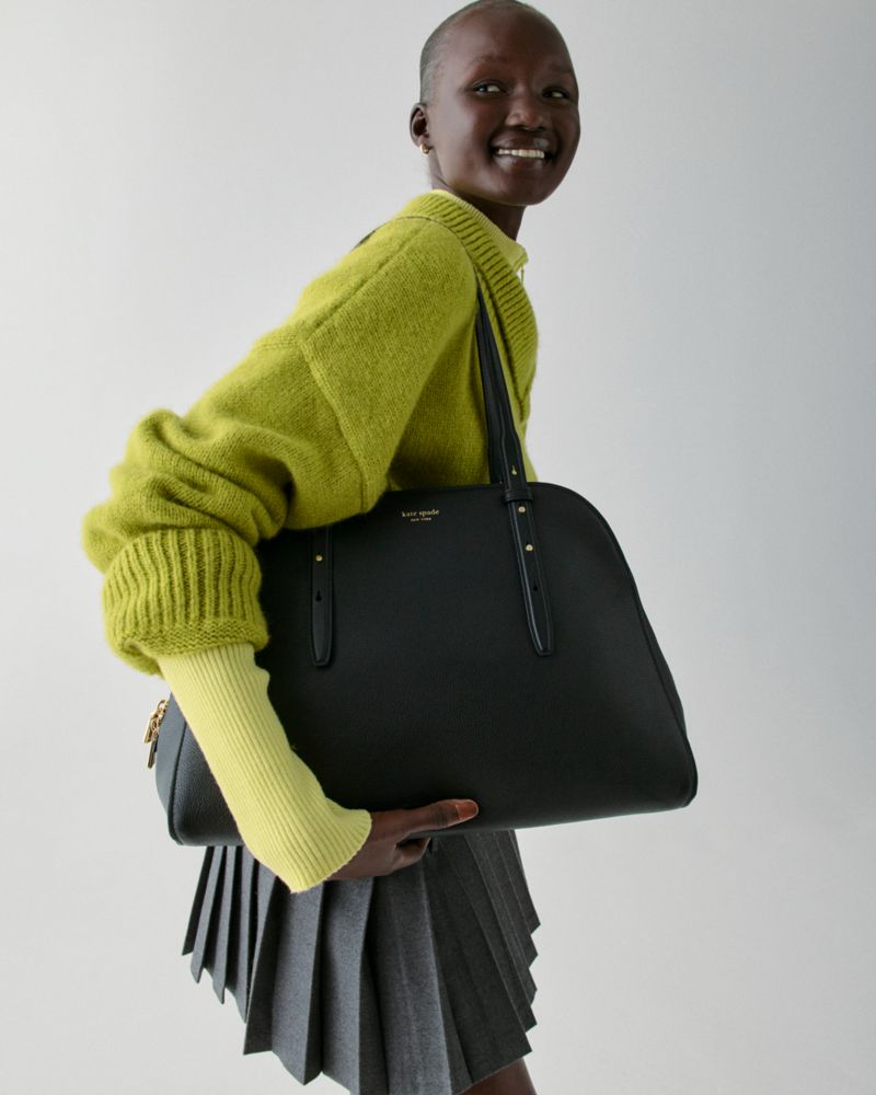 Kate Spade,Maise Carryall Bag,Leather,Satchel,Work,Black
