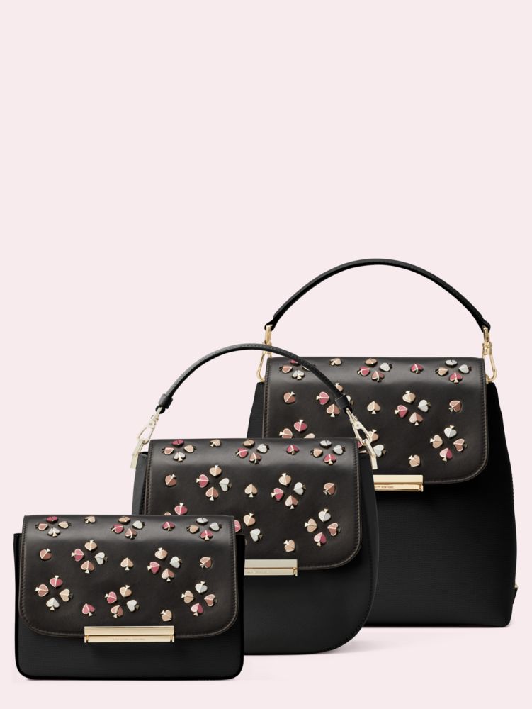 a little change can make a big difference. case in point: this smooth italian leather flap studded with enamal spade flowers that snaps into any of our make it mine bags. it will give you the joyous feeling of getting a whole new bag, without actually getting a whole new bag. and it's a great travel companion when suitcase space is limited.