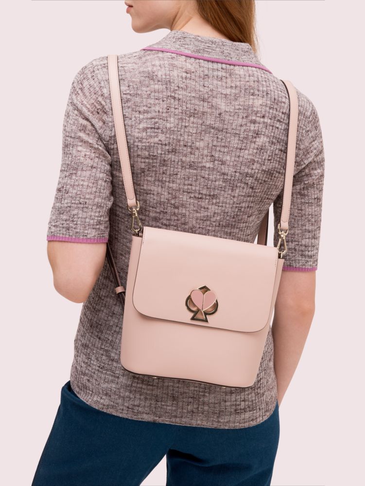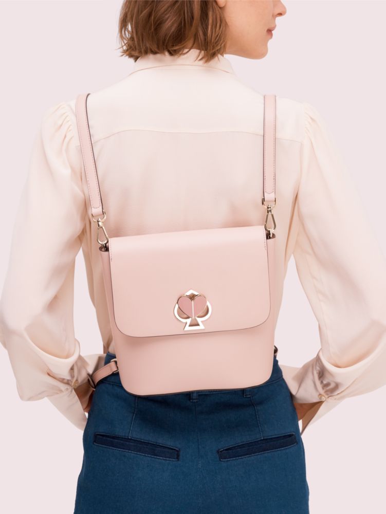 this petite customizable backpack is an ideal base for your personalized design: the smooth italian leather comes in a range of timeless colors, it becomes a crossbody by just de- and re-attaching the straps for extra wearability, and you can swap out the straps, flap and heart twistlock for a new look in a flash. that's the beauty of our new make it mine collection: choose as many of our easy-to-use snap-on flaps and clip-on straps (available in colorful glitter, metallic leopard, faux shearling for example) as your heart desires. then, punctuate it with an enamel or metal twistlock, and say hi to the bag of your dreams.