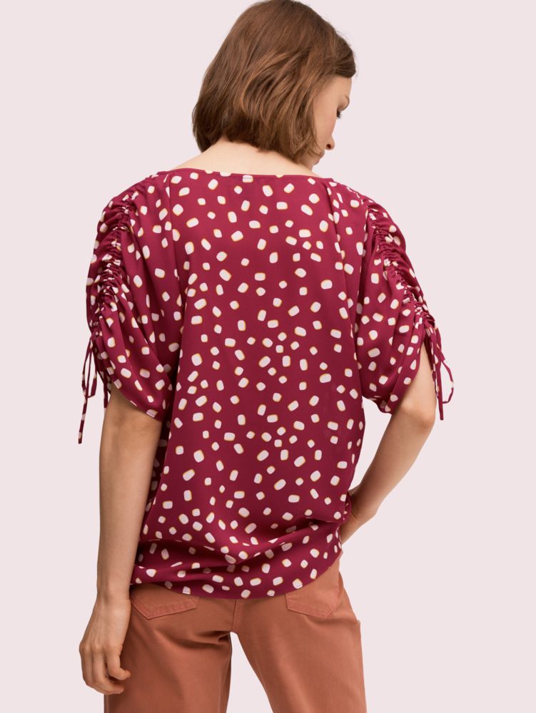Mallow Dot Ruched Sleeve Top