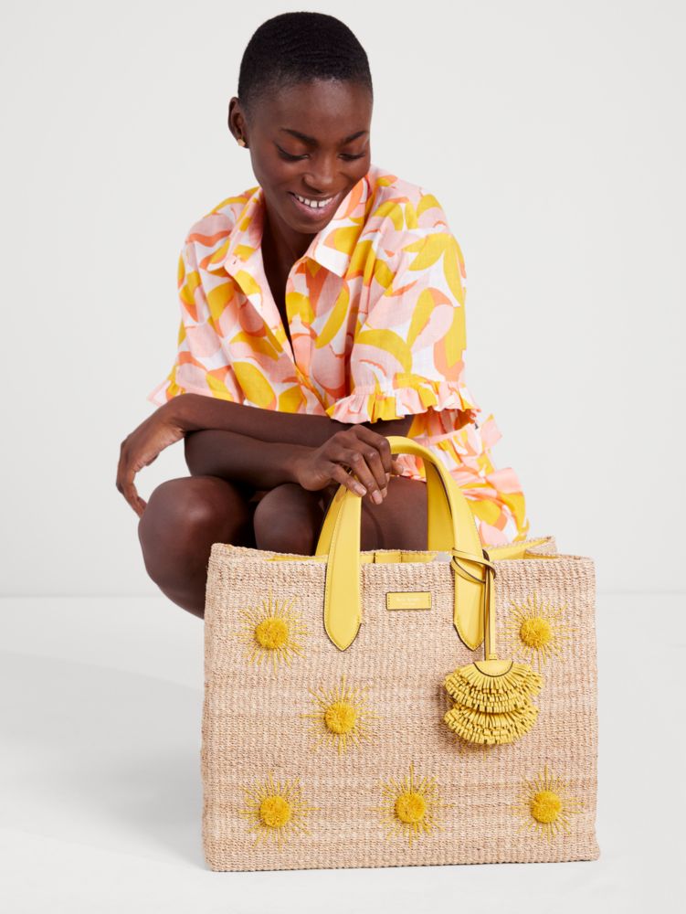 We updated our signature Manhattan tote in embroidered raffia straw for the summer. It still fits a 13-inch laptop, though we recommend packing your beach towel instead.