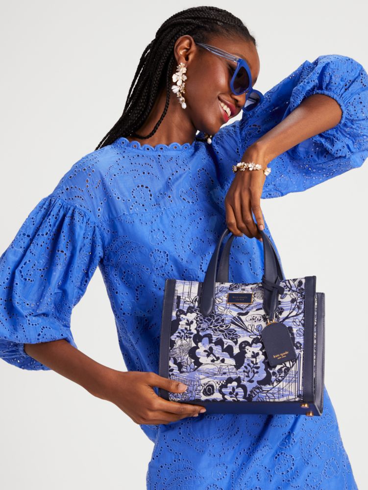 No spring outfit is complete without a pretty handbag, like this new Manhattan tote in our Walk In The Park toile jacquard. You'll want to go out just to show it off.