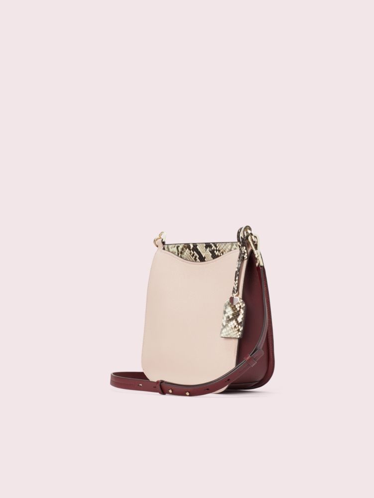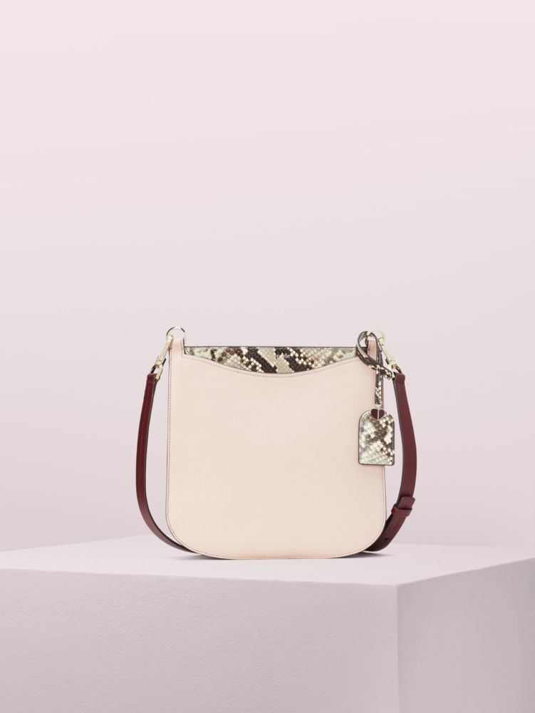 our margaux embossed snake large crossbody is defined by its curved feminine silhouette and functional interior. made from refined grain and snakeskin-embossed leather, it features two slip pockets on the outside with even more storage space inside. the adjustable crossbody strap has pretty, jewelry-like hardware. and the leather luggage tag is finished with an enamel spade, our signature mark.