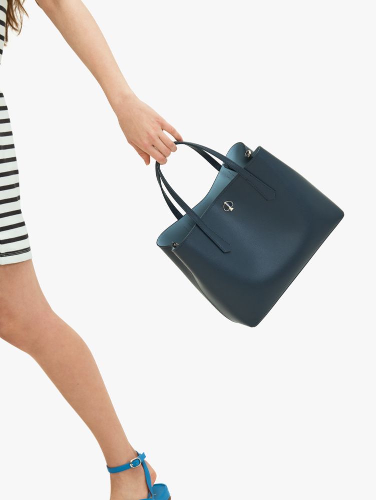 our molly medium satchel is a feminine update to the everyday tote of the same name, it's structured with soft curves and gusseted sides, and extremely lightweight so you can carry all your essentials. a dog-clip closure keeps it closed while giving you easy access to what's inside. molly's finishing touch is our enamel spade.