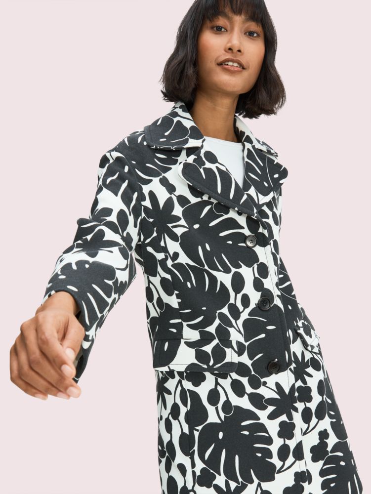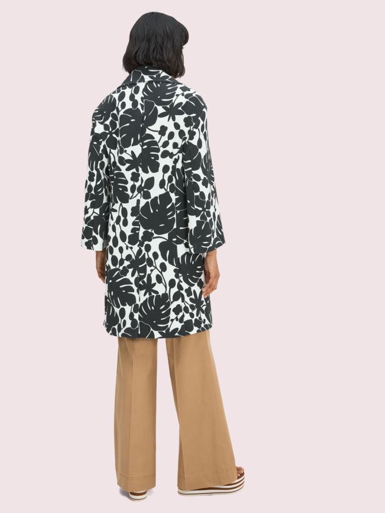 here's a piece for your next great adventure (even the one right outside your door). our double-weave textured coat in a monstera pattern looks great with a printed dress. or, throw it over jeans and a tee and go.