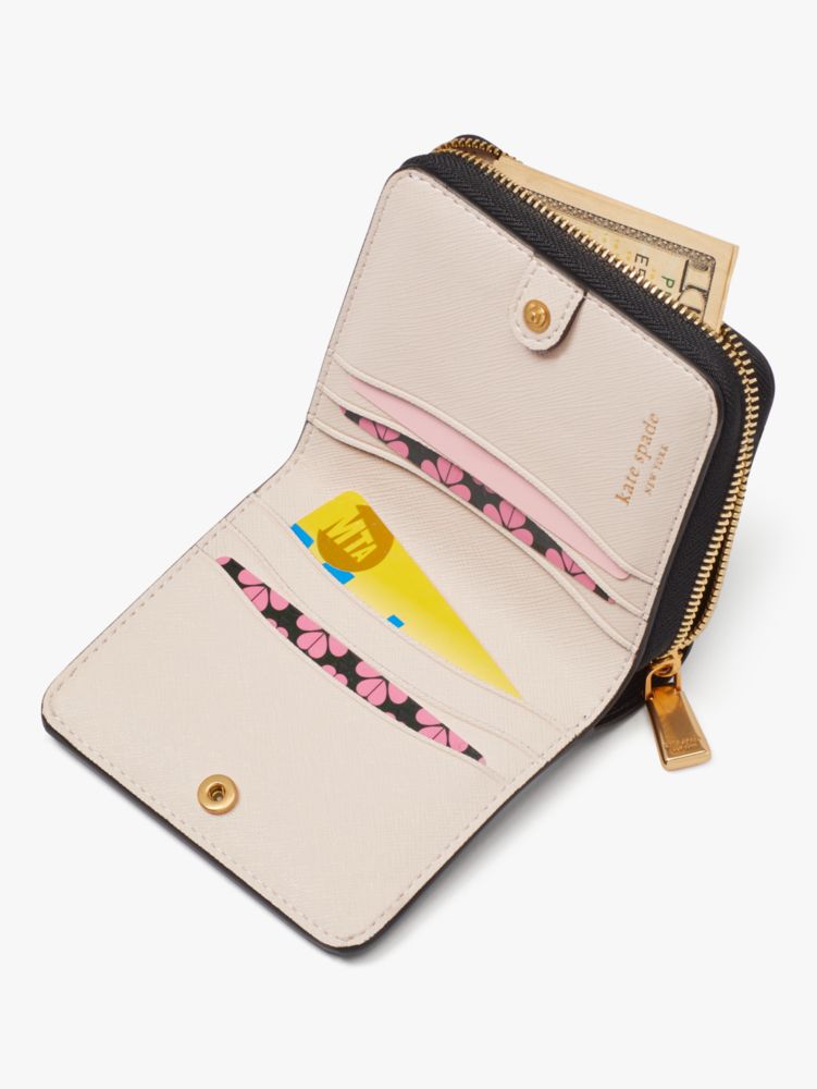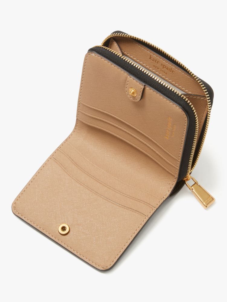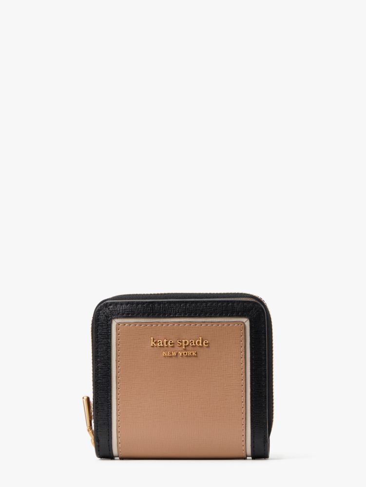 Kate Spade,Morgan Colorblocked Small Compact Wallet,Leather,Bi Fold,PVC,Logo,Metal,Piping,Casual,