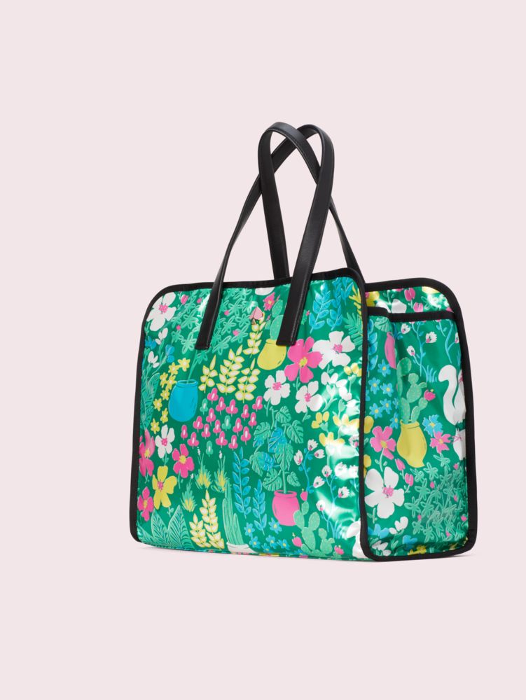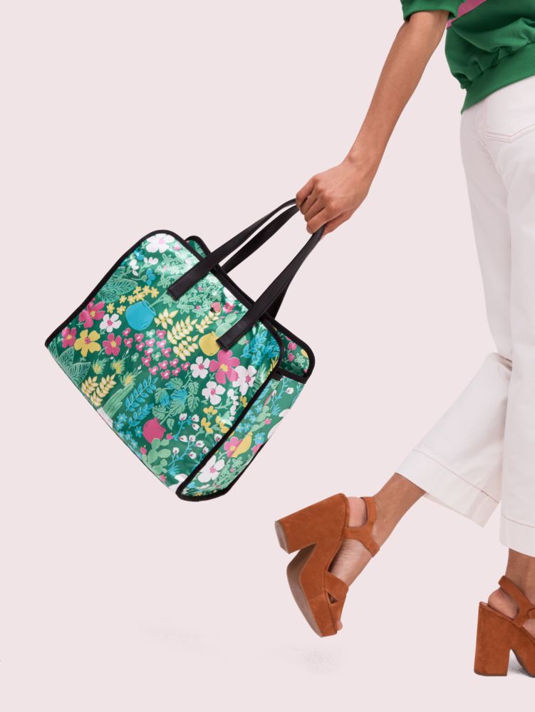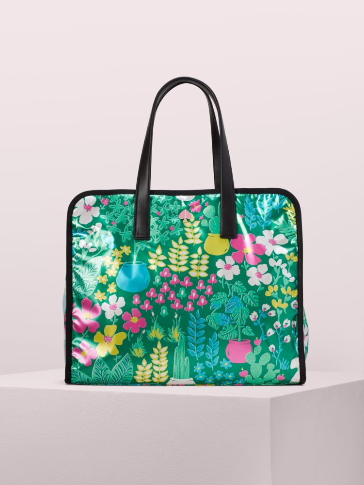 there's a sophisticated, feminine and unexpected mix of colors on this morley large tote. we printed its italian poly-cotton blend fabric with our new garden posy pattern for summer. then, we finished it with an enamel spade and grosgrain trim. a zipper pocket inside (with a snap tab slip pocket inside that) divides the tote into two large compartments. we love it for travel, weekend outings and wearing it alongside a small bag to carry bigger essentials.