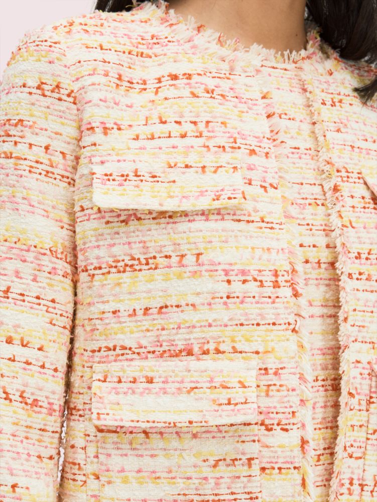 we adore tweed for its timeless sophistication. and here's a little secret about ours: we weave a custom space-dyed paper yarn into it to give this colorful jacket its beautiful texture and dimension. wear it with the matching dress or over jeans and a tee.