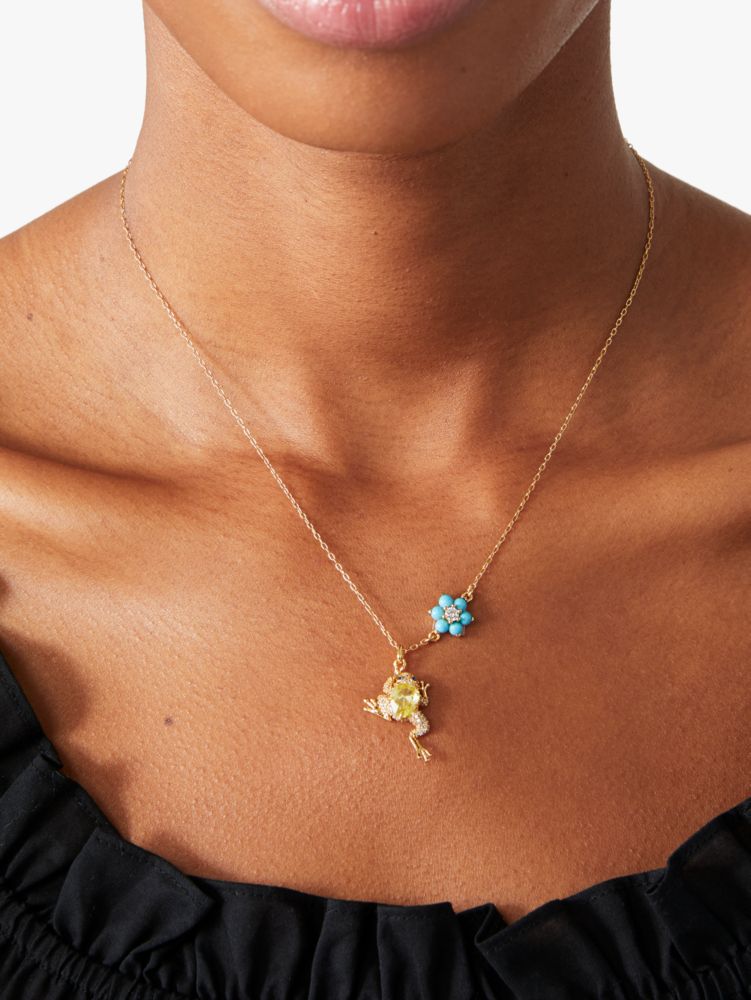 see that jeweled body, the sparkly legs, those golden feet? this frog pendant is so pretty you could kiss it!