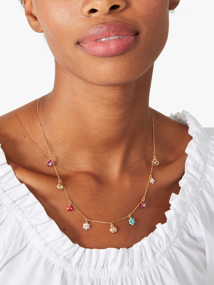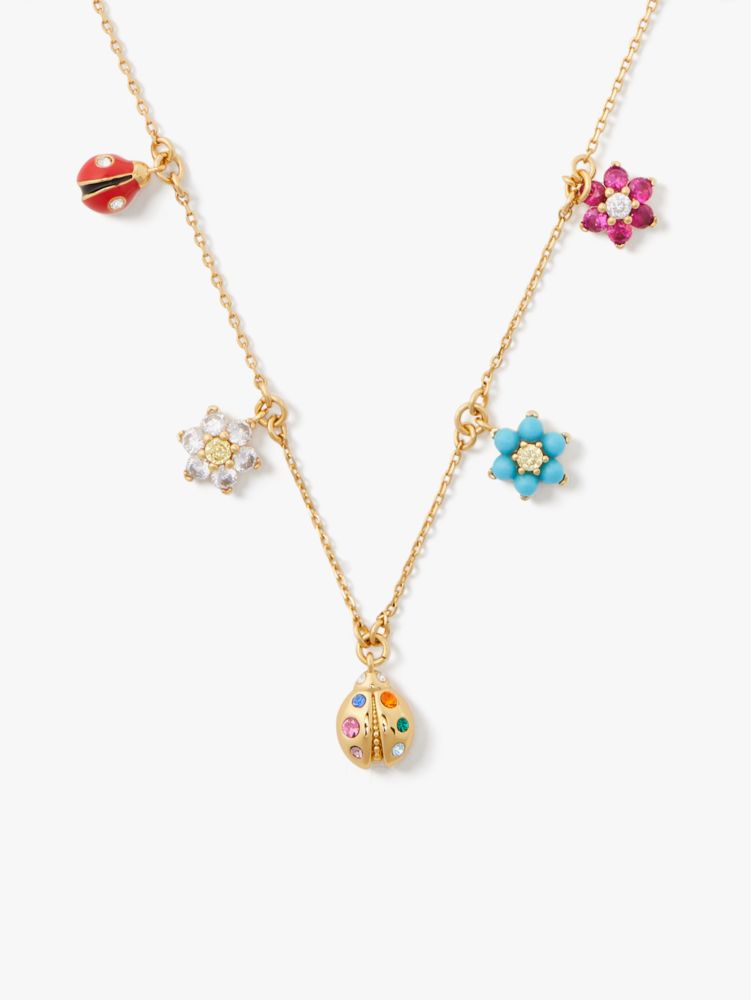 ladybugs bring luck, you know... wrap yourself in good fortune with this charm necklace that's (literally) crawling with them.