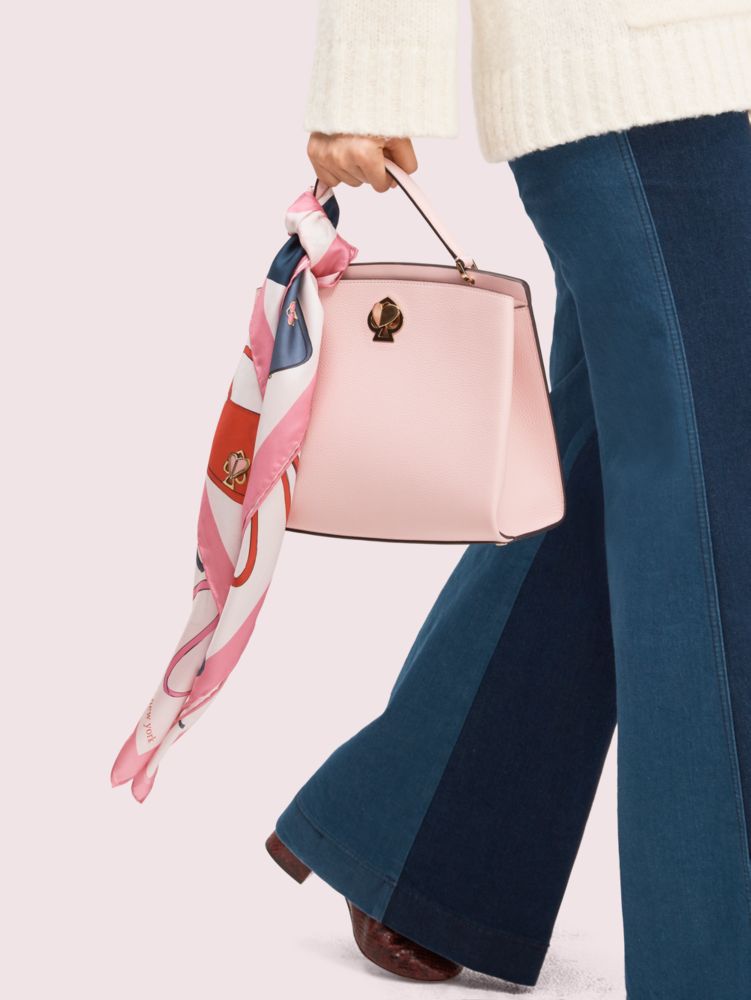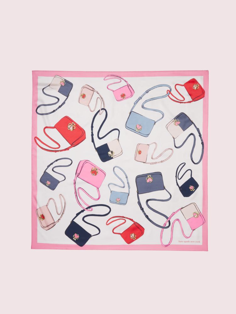 we took our popular nicola bag and scattered it across this soft silk twill scarf. a pink border and hand-rolled hems add to the luxe feel of this piece.