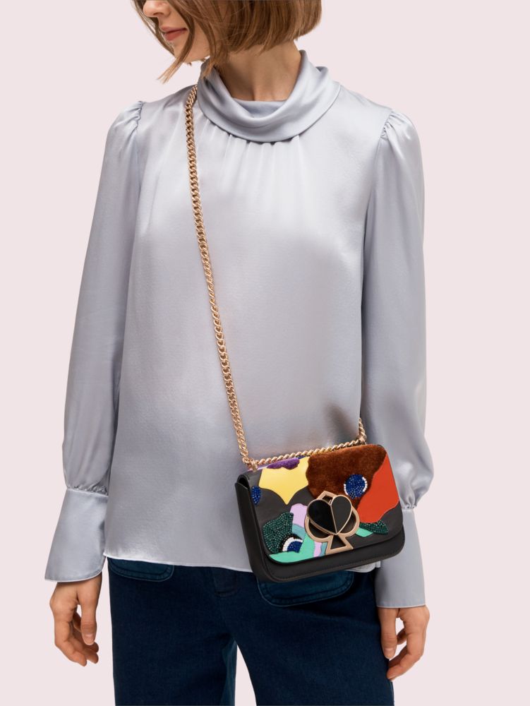 Kate Spade,Nicola Beaded Intarsia Twistlock Small Convertible Chain Shoulder Bag,