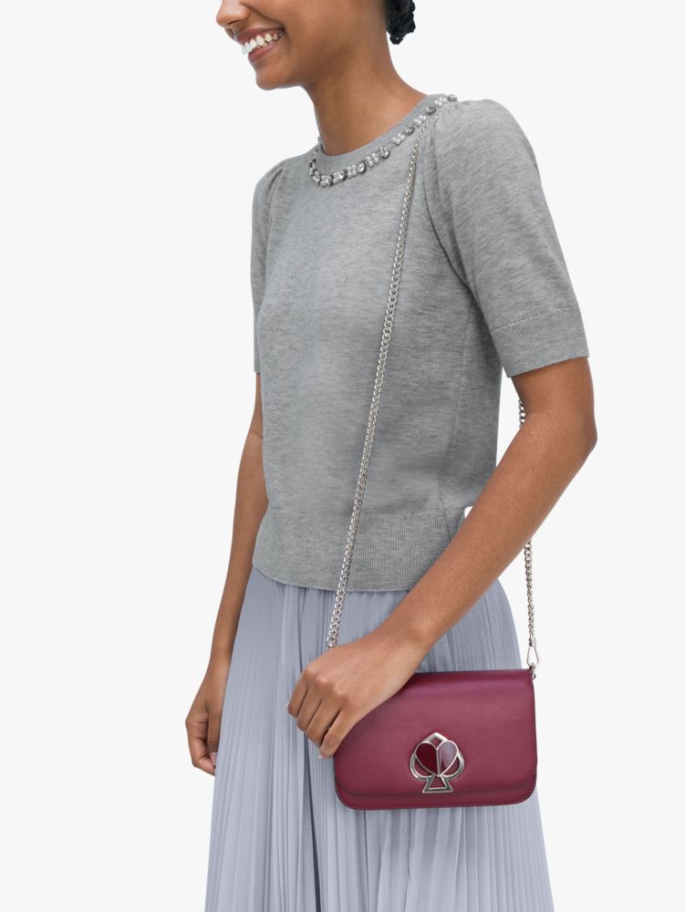the nicola twistlock convertible crossbody is a utilitarian take on our original shoulder bag of the same name. featuring interchangeable chain and adjustable webbed straps, it can be worn across the body, over the shoulder or around the waist.