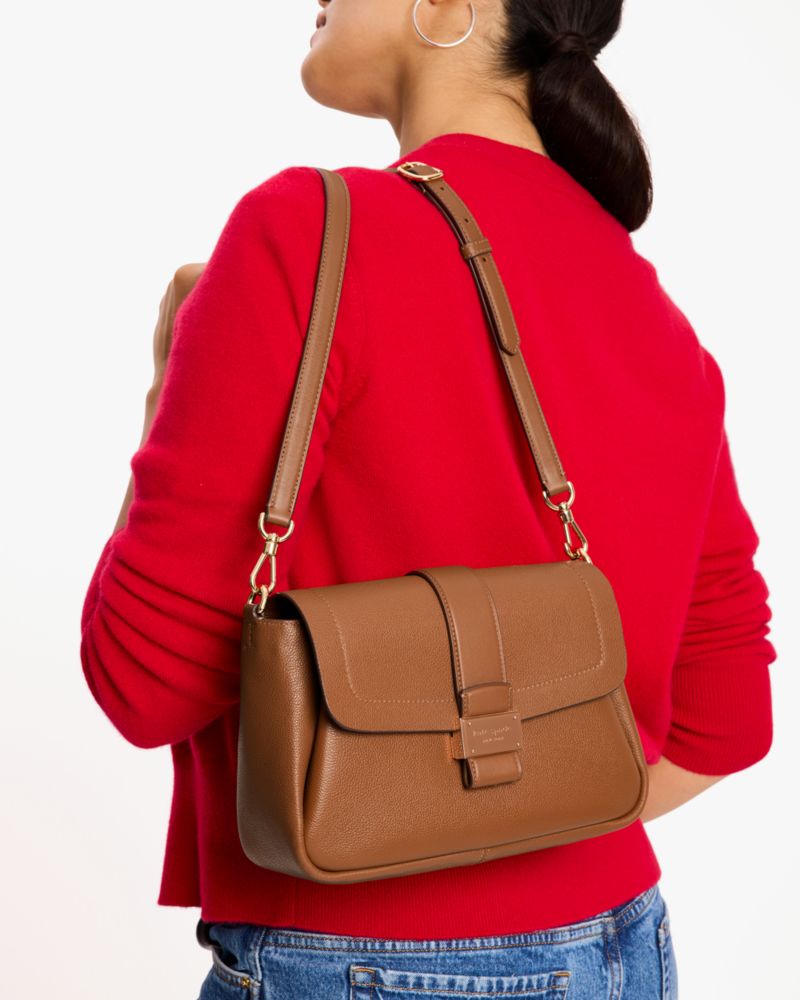 Meet Nouveau, our latest collection of vintage-inspired staples with a modern twist. This pebbled leather shoulder bag features a belt-trimmed flap for a chic nod to '00s style.