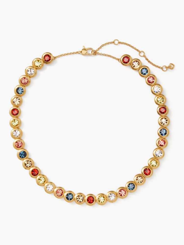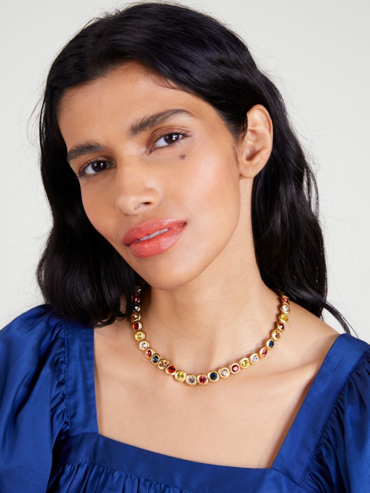 When time is of the essence and you don't know what to wear (been there), may we suggest: a simple black dress played up with this eye-catching necklace. Then you'll be fashionably on the dot.