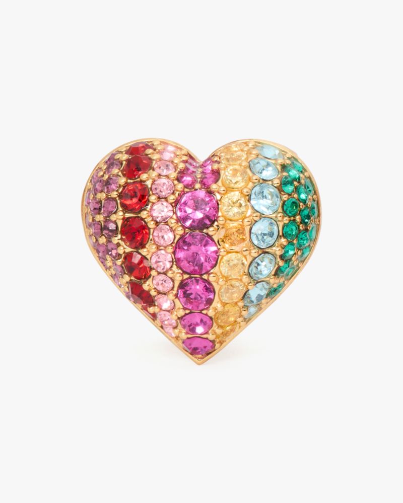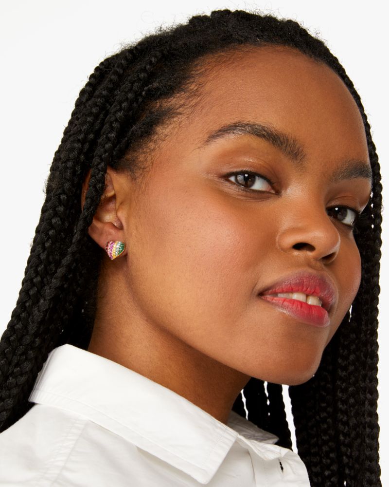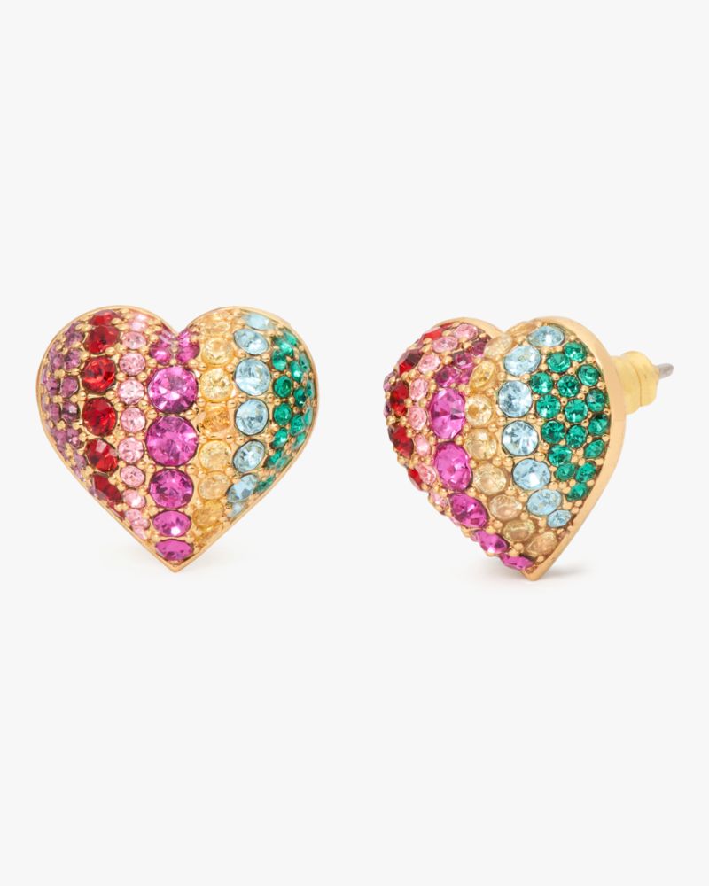 Kate Spade,On The Dot Rainbow Collection Heart Studs,Studs,Pave Embellishment,Rhinestones,Yellow Gold Plated,Titanium,Day ...,Multi Color