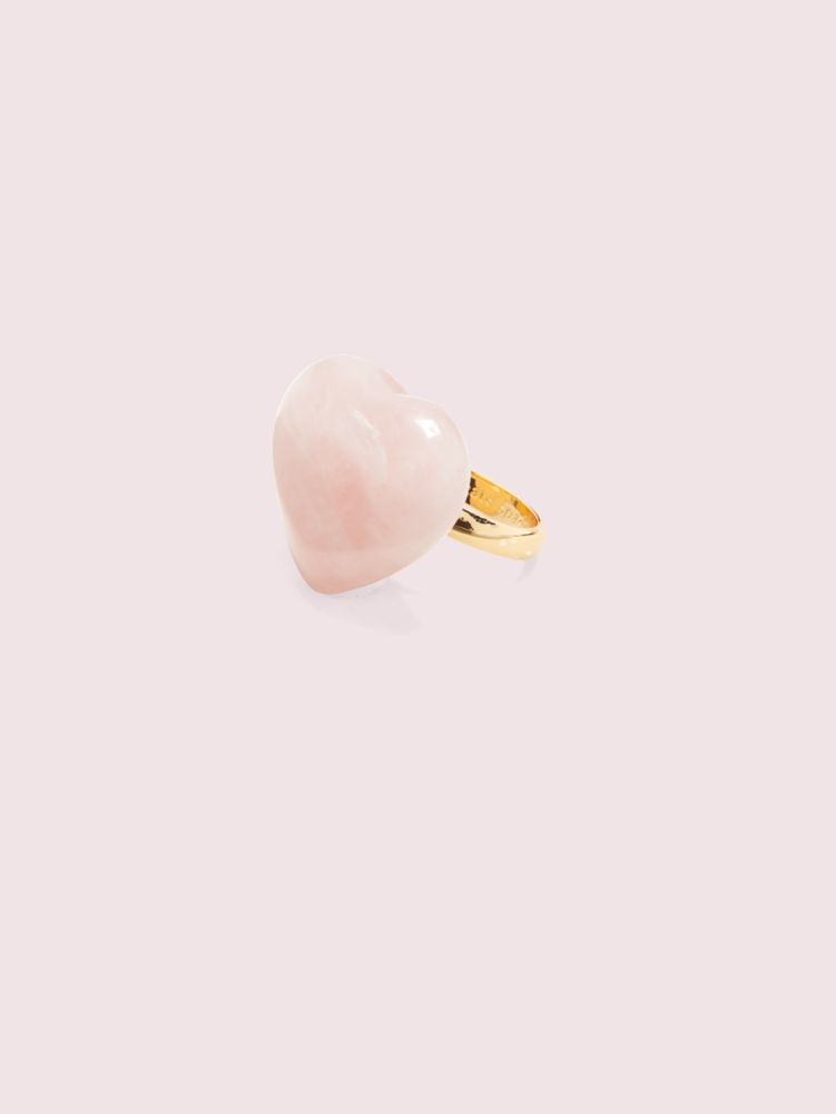 our open heart collection features a range of dainty jewelry in gold-plated metal punctuated with semi-precious stones like rose quartz and line agate. this cocktail ring, hand-carved in the shape of a heart, will add a feminine finishing touch to any look and will pair nicely with the other rings in your jewelry box.