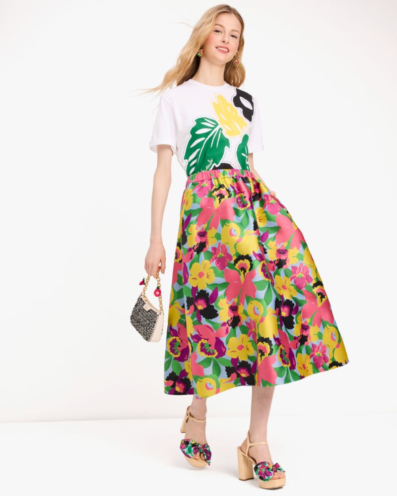 Designed for twirling and dancing, this eye-catching skirt is made from our bold Orchid Bloom print brocade.