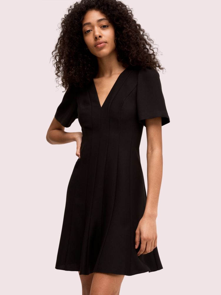 this little black dress might look simple, but the thoughtful details will make it your next go-to piece. the satin-back crepe feels silky-smooth when you slip it on. plus, the fit-and-flare silhouette along with the vertically-paneled construction drapes the body in the most flattering way. it's really versatile (in true LBD fashion), so dress it up with heels for a night out, or keep it casual with sandals on your next vacation.