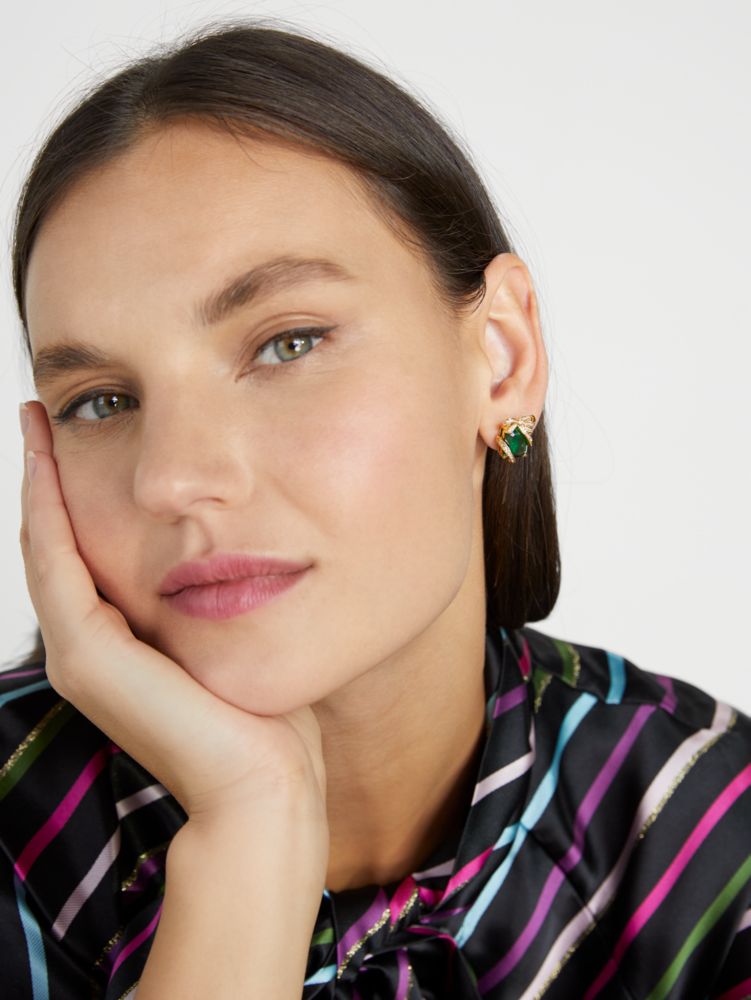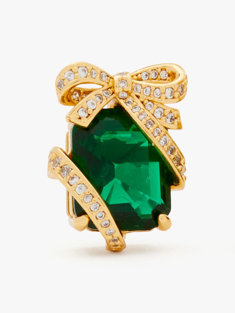 Give the gift of sparkle: these stud earrings feature emerald-cut crystals wrapped in a pavé encrusted ribbon. (How fancy!)