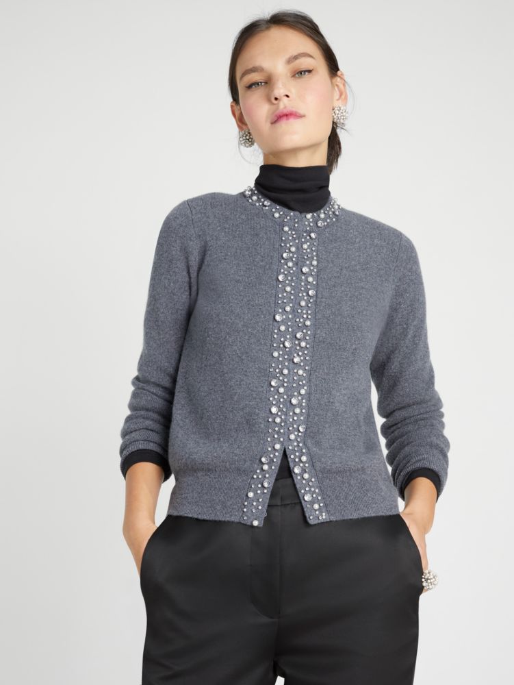 It's all in the (sparkly, pearly) details. Our cashmere cardigan is embellished with rhinestones and faux pearls for a dazzling finish.
