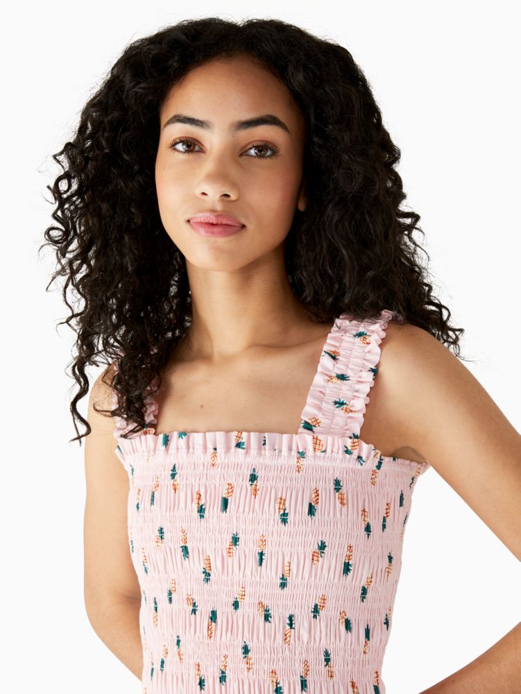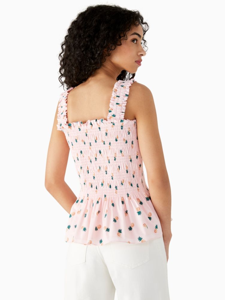 Kate Spade,Pineapple Smock Shirt,Spandex,Cotton,Tank,Gathered Elastic Detail,Frills,Ruffles,Shirring,Lined,Day Party,Pink