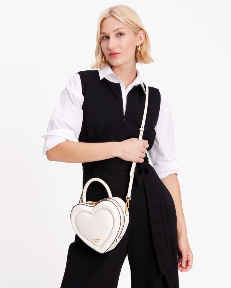 Kate Spade,Pitter Patter 3d Heart Crossbody,Leather,Crossbody,Metal,Logo,3D Embellishment,Day Party,Cream