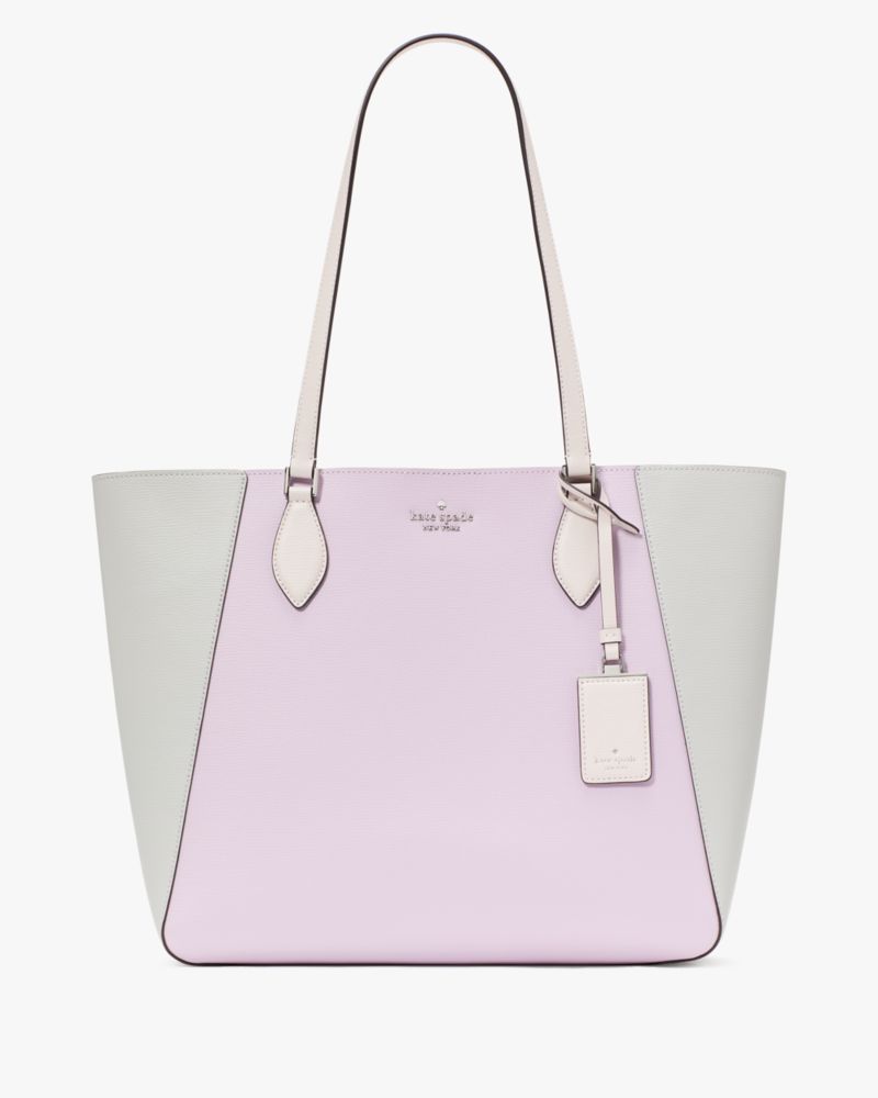 Kate Spade,Poppy Colorblock Large Tote,Lining Leather,Tote,Color Block,Metal,Logo,Lined,Casual,Lavender