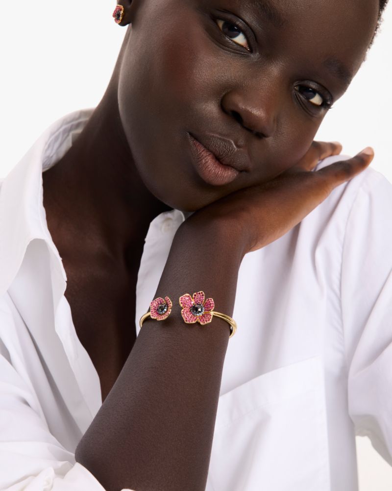 Give your look some floral flourish with this cuff bracelet featuring crystal-embellished poppies.