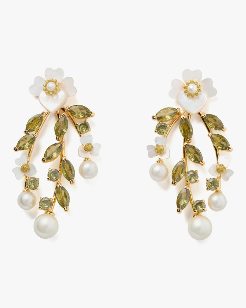 Special moments call for special jewelry, like these statement-making chandelier earrings with mother-of-pearl pansies.