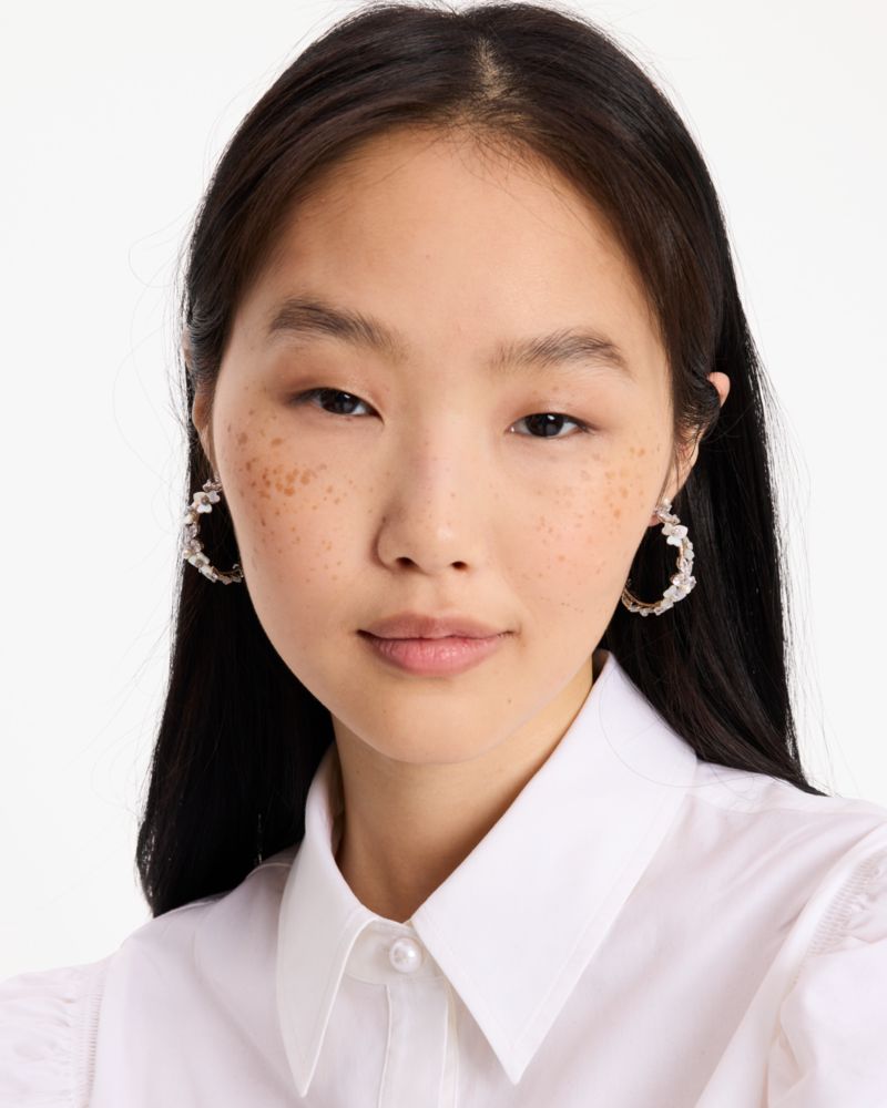 Kate Spade,Precious Pansy Hoops,Hoops,Mother of Pearl,Pearl,Floral Embellishment,Day Party,