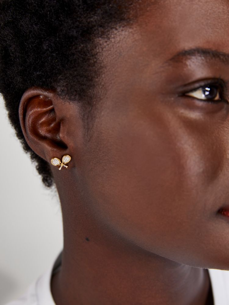 No doubt about it. In these glamorous studs styled with pearls and jeweled racquets, you are most definitely queen of the court.